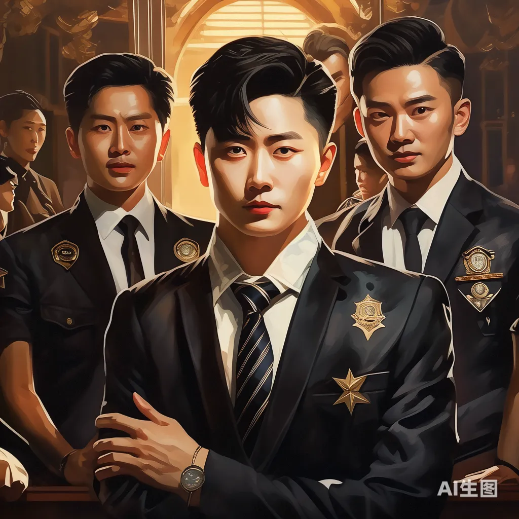 在此,附上一幅根据《执法者》剧中主要人物创作的群像画,从画中我们可以看到周磊、楚云、齐麟、陈启伦、穆子风等核心角色的身影。他们围绕着法庭与法律的主题,共同编织着正义与智慧的故事,每一笔每一划都透露出剧中人物对于法治的坚守与追求。