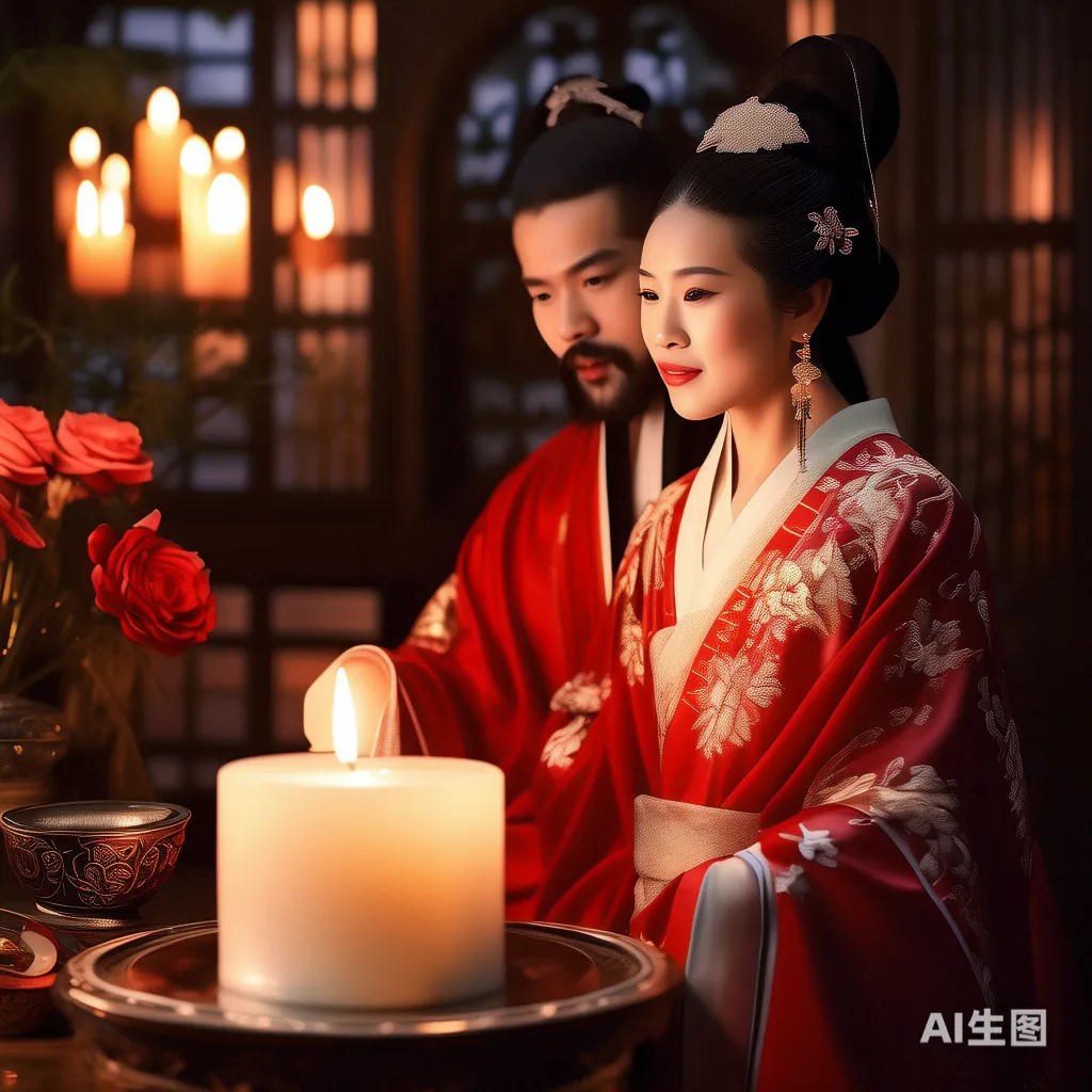 在新婚之夜,太子萧定权与太子妃张念之之间的互动充满了温馨与细腻的情感。请欣赏这一幕的插图,它生动地捕捉了《鹤唳华亭》中洞房花烛夜的场景: